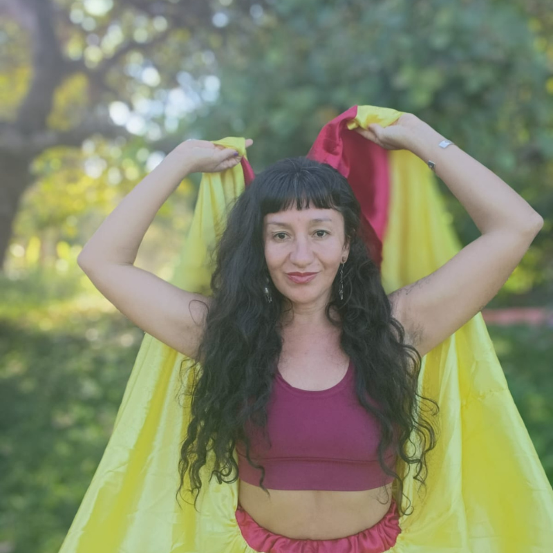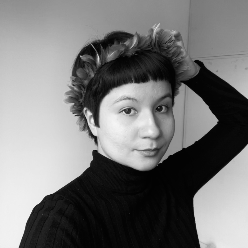 Artista visual, poeta e pesquisadora. É natural de Porto Velho/RO e pertencente ao povo Mura. Mestranda em Artes Visuais na Universidade do Estado de Santa Catarina (UDESC), investiga processos de criação e percepção nas artes visuais que confluem afeto, poesia e cosmopercepções descoloniais. Em sua prática artística, utiliza estratégias de linguagens como escrita ensaística, pintura, vídeo e colagem para entrelaçar paisagem, corpo, memória e pertencimento.