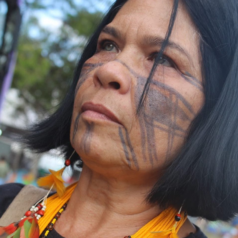 Pertence aos povos Tupinambá de Uruitá, Ayrama do Peru e Mebengokre do Pará. @panhonka, é escritora, ilustradora, ceramista, batedora de açaí, artista plástica, curadora, pesquisadora, co-fundadora do Movimento Plurinacional Wayrakuna, membra do Parlamento Indígena do Brasil, mãe e idealizadora da marca indígena ORIGINÁRIAS.